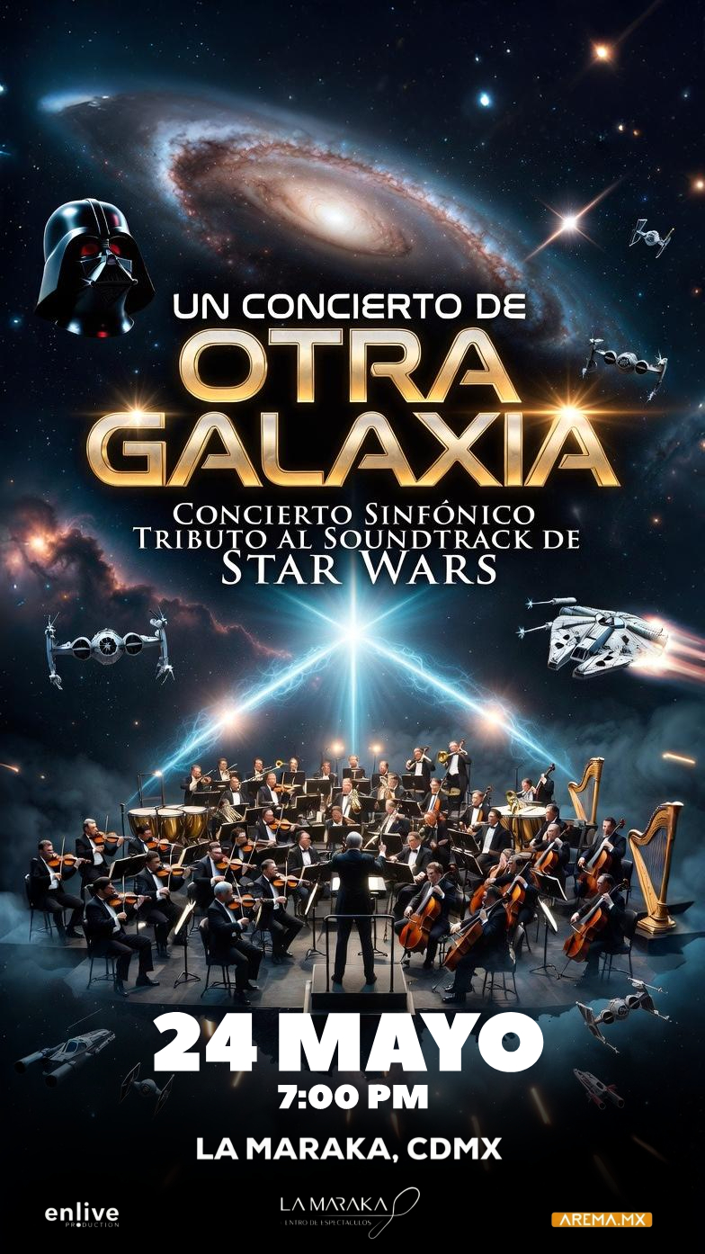 La épica sonora que ha acompañado a una de las sagas cinematográficas más influyentes de todos los tiempos llegará a la Ciudad de México en forma de espectáculo sinfónico. El próximo viernes 24 de mayo a las 19:00 horas, el Centro de Espectáculos La Maraka será sede de “Un concierto de otra galaxia”, un homenaje musical que revive en vivo las composiciones que han dado identidad y profundidad emocional al universo de Star Wars. Los boletos para este evento se encuentran disponibles en taquillas del inmueble y en el Sistema Arema.mx