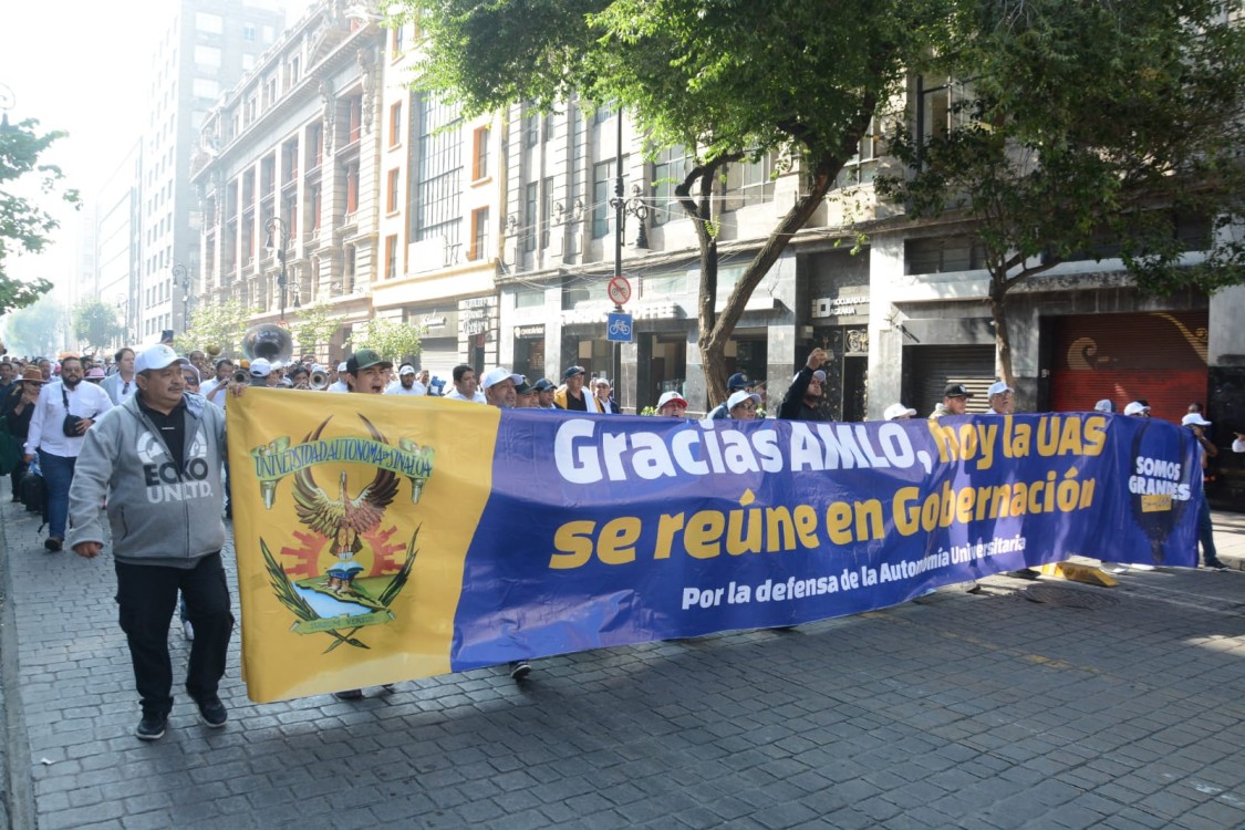 Con mantas y consignas de “Gracias AMLO”, “Fuera Rocha”, “Viva la Autonomía”, “Viva la UAS” y “Viva Madueña”, para apostarse en la gran explanada en esquina de la calle Moneda; recorrieron más de mil 300 kilómetros convencidos de que la Autonomía se debe defender y que el Gobierno Estatal pare la persecución y discurso de odio en contra de los universitarios y una de las mejores institución de educación superior del país.