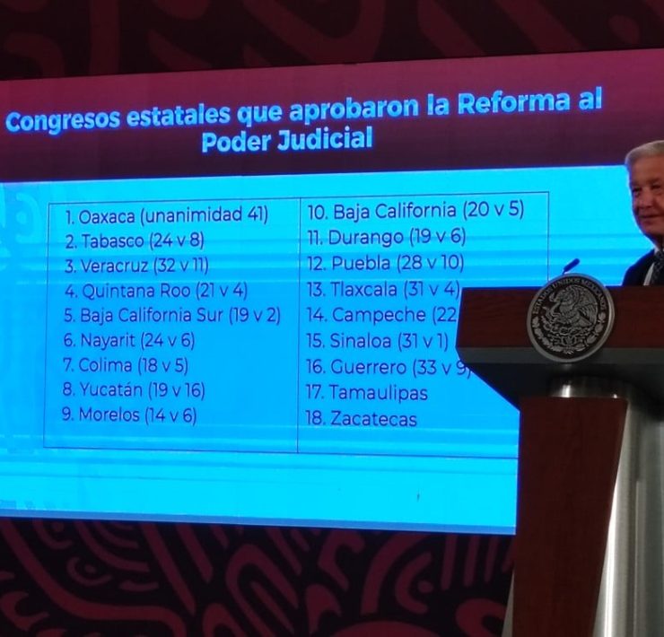 López Obrador recibió la noticia a través de su vocero, Jesús Ramírez Cuevas, y no tardó en destacar la relevancia de la decisión. “Este es un reflejo de que la mayoría de los mexicanos respaldan la transformación del Poder Judicial”, señaló el mandatario en su habitual conferencia matutina, agradeciendo el apoyo de los legislativos locales.