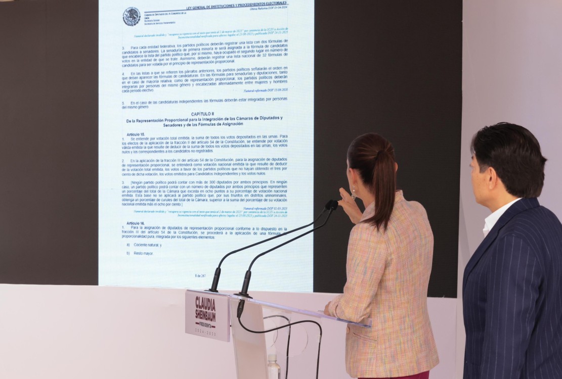 Según Sheinbaum, la fórmula para asignar a los legisladores plurinominales, detallada en los artículos 15 y 16 de la LGIPE, garantiza un reparto equitativo de los diputados de representación proporcional. La presidenta electa defendió que, a pesar de haber ganado 161 distritos y de tener derecho a 87 diputaciones plurinominales, Morena no superará el límite constitucional de 300 diputados para un solo partido.