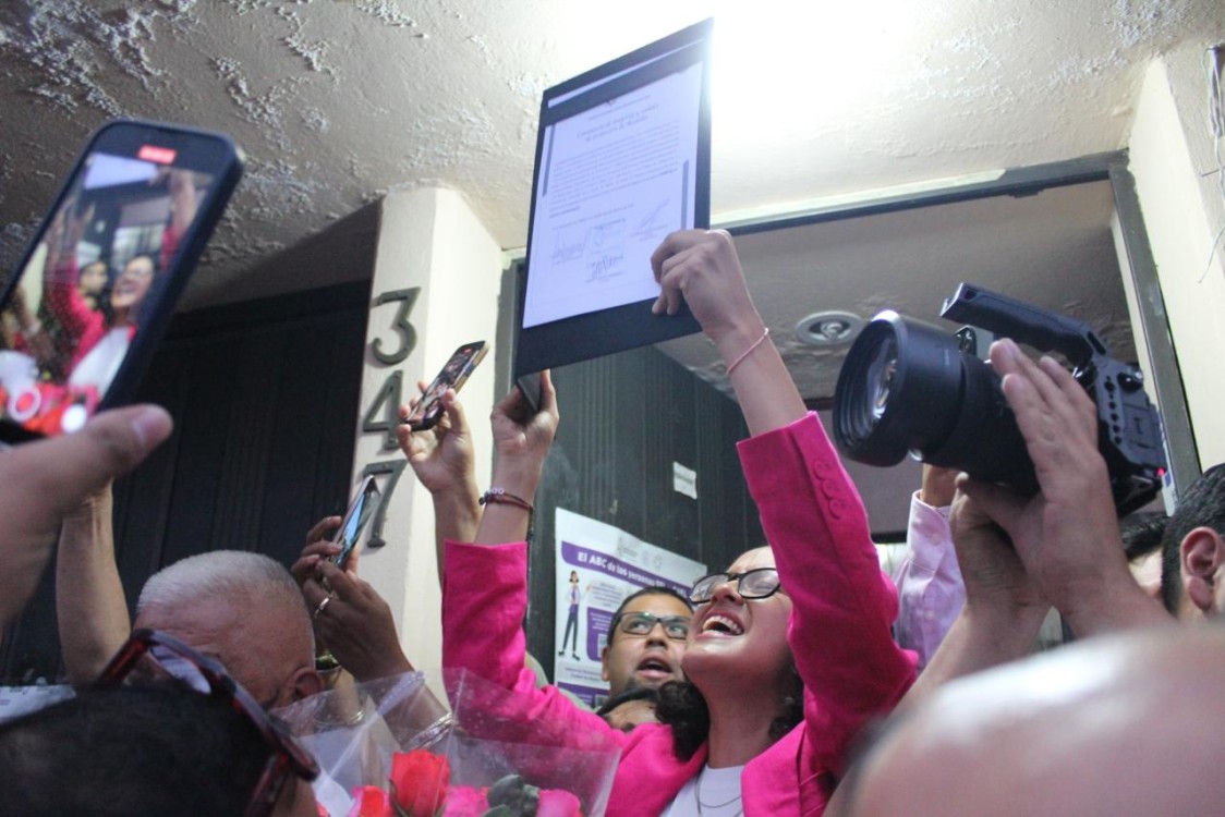 A las afueras de la Dirección Distrital 14 del IECM se congregaron cerca de 300 personas para recibir a Osorio, quien a sus 33 años se convirtió en la alcaldesa más joven y votada de la demarcación.