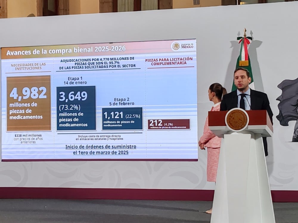 Clark detalló que hasta el momento se han entregado 42 millones de piezas de medicamentos e insumos, mientras que el proceso de compra consolidada para este año y el siguiente muestra un progreso significativo. Según sus declaraciones, el pasado 14 de enero concluyó la primera ronda de adjudicaciones con 3,649 millones de piezas adquiridas, lo que representa el 73.2% del total requerido.