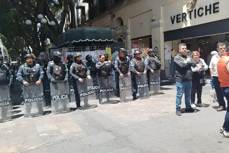 Eran las 11:30 horas cuando patrullas de la SSC y vehículos oficiales de la Secretaría de Gobernación se concentraron en la calle 8 Oriente-Poniente y 5 de Mayo. En el operativo participaron 20 elementos de Vía Pública y más de 30 policías, equipados con escudos y bastones PR 24. Junto a ellos, se encontraban líderes de ambulantes que entablaron un diálogo con los directores de Gobernación.