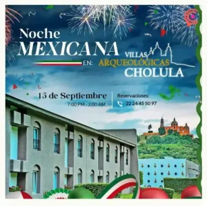Para quienes buscan una experiencia más privada, el hotel Villas Arqueológicas San Andrés Cholula ofrece una Noche Mexicana con la presentación de la Sonora Dinamita. A partir de las 19:00 horas, los asistentes podrán disfrutar de un buffet con platillos tradicionales como mole y pipián, además de juegos y áreas infantiles. El evento contará con mariachi en vivo, DJ y el gran show de la Sonora Dinamita. Reservaciones al 2224455097.