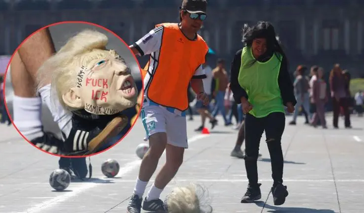 ‘Retas’ de fútbol con balones de Trump en CDMX en protesta por el ‘Mundial del despojo’