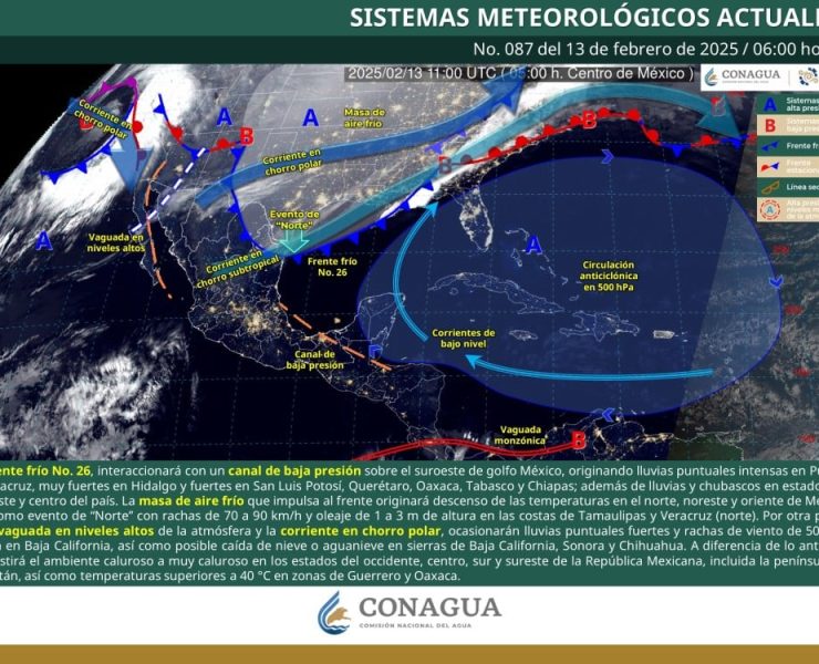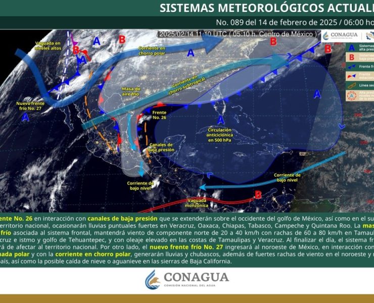 Este viernes 14 de febrero, el frente frío No. 26 se mantendrá estacionario sobre el…