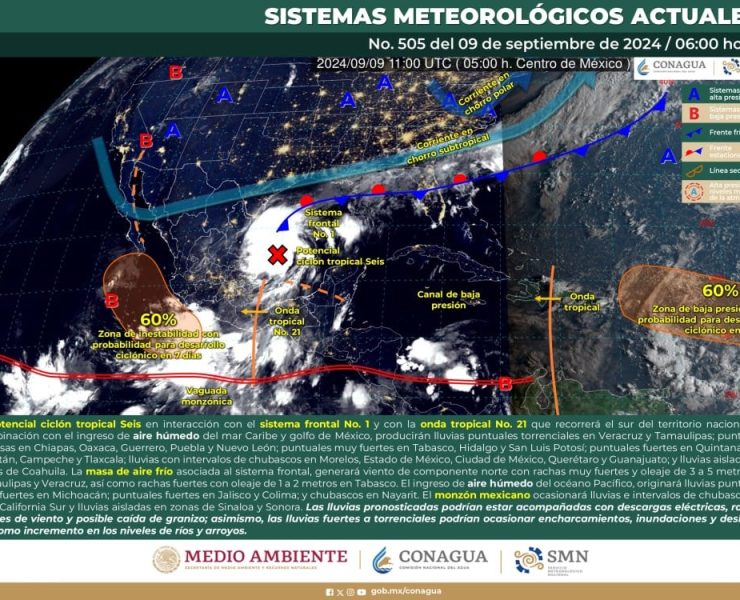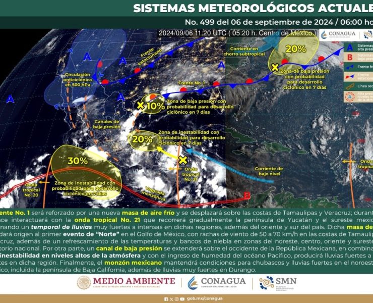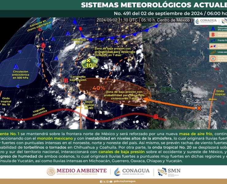 Servicio Meteorológico Nacional (SM), prevé que para este día, una baja presión en el océano Pacífico…