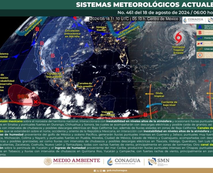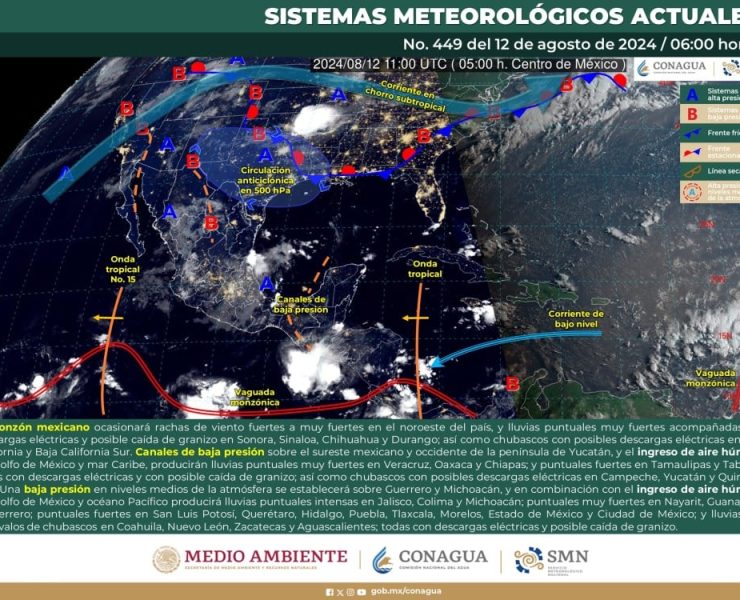El Servicio Meteorológico Nacional (SMN), prevé que para hoy, el monzón mexicano en interacción con inestabilidad en niveles…