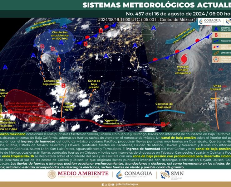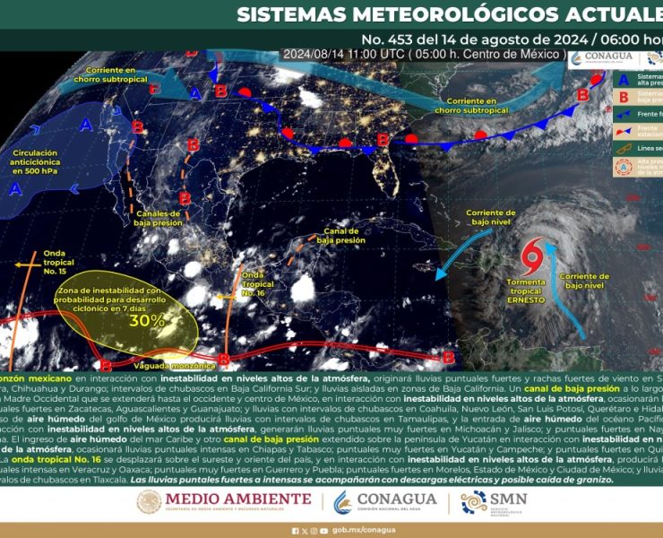 El SMN prevé para hoy que, onda tropical No. 16 se desplazará sobre el oriente, centro…