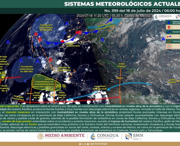 Servicio Meteorológico Nacional (SMN), prevé que para este día, la onda tropical No. 11 se desplazará sobre…