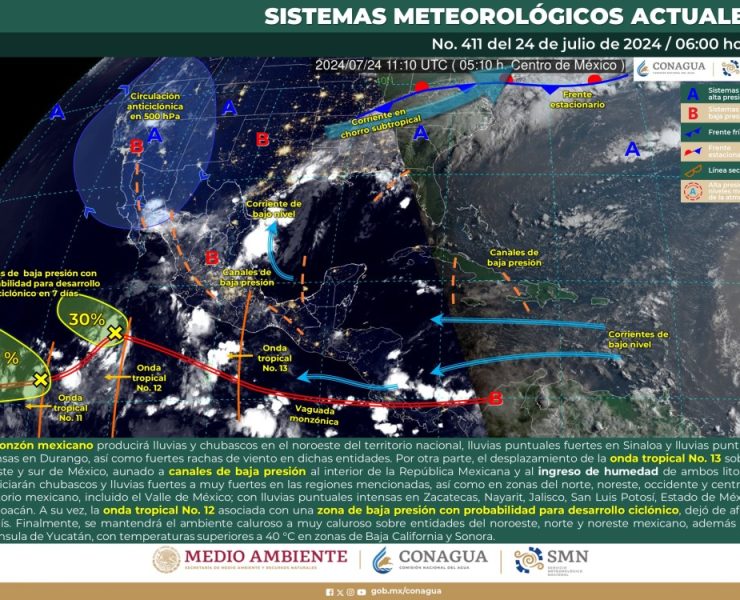El Servicio Meteorológico Nacional (SMN) prevé para este día que, el monzón mexicano producirá lluvias y…